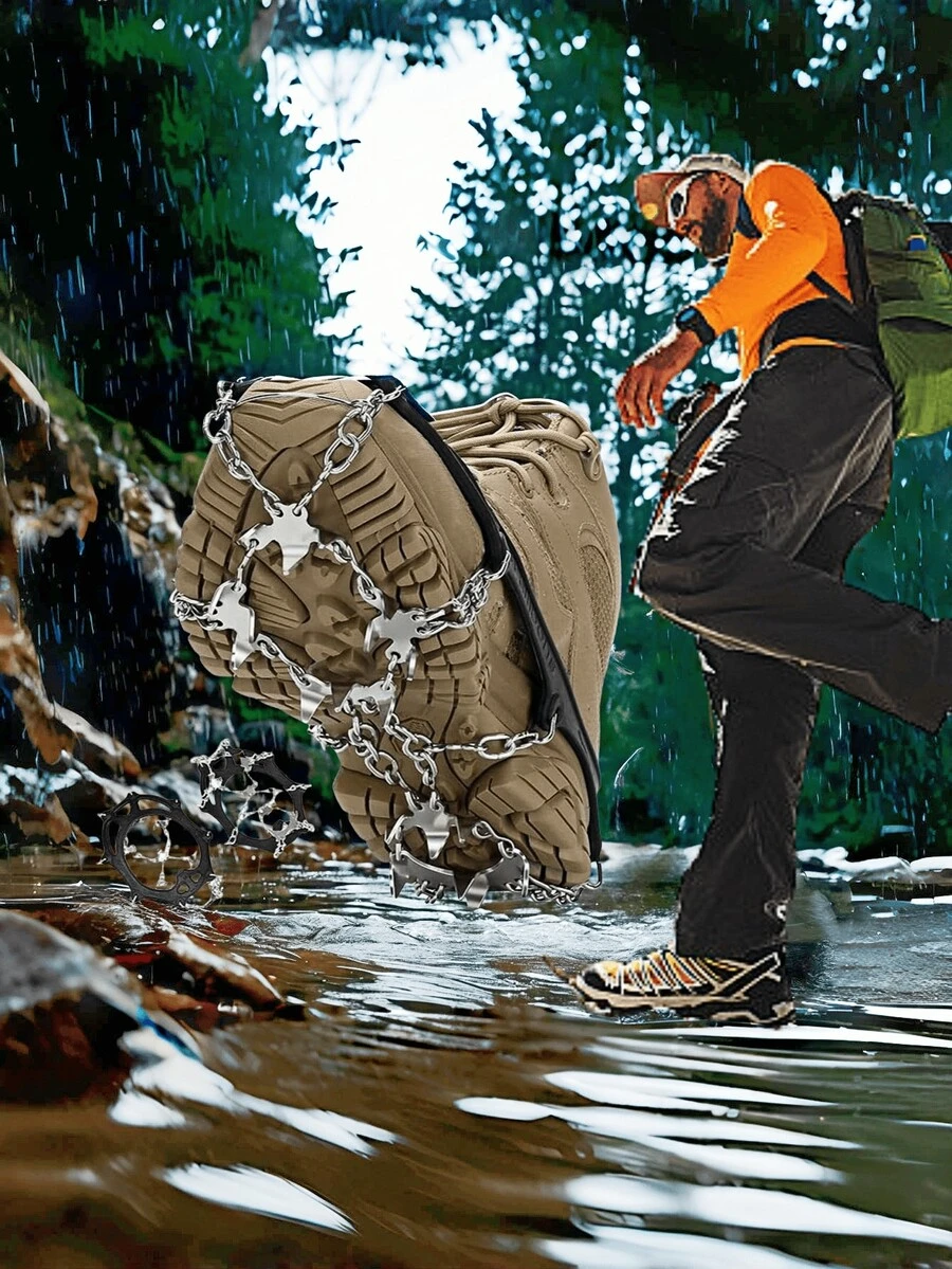 # Safety Anti-Slip Shoe Covers, 1 Pair Of Snow And Ice Grip Shoes/Boots With Anti-Slip Cleats, Ice Skate Anti-Slip Spikes, Snow And Ice Anti-Slip Rubber Cleats, Suitable For Walking On Snow And Ice, 10 Steel Cleat Spikes, Ideal For Hiking, Strolling, Mountain Climbing, Jogging