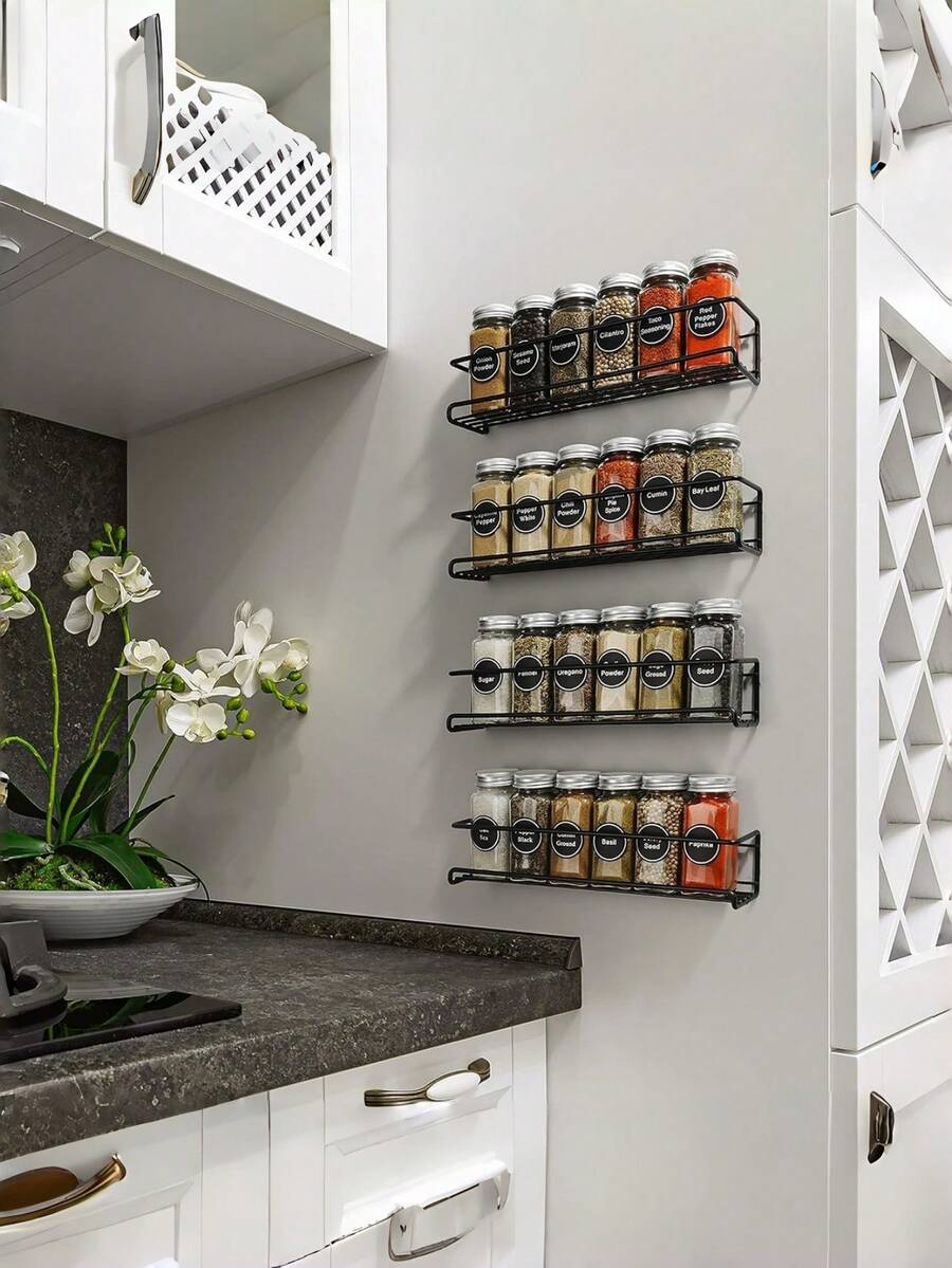 1/2/3 PCS Black Spice Rack Wall Mounted Screw Or Adhesive No Drill Kitchen Organizer Shelf Cabinet Storage Space Saver Home Decluttering Solution Housewarming Gift For New Home Kitchen Upgrade Organization Essential Practical Gift For Her