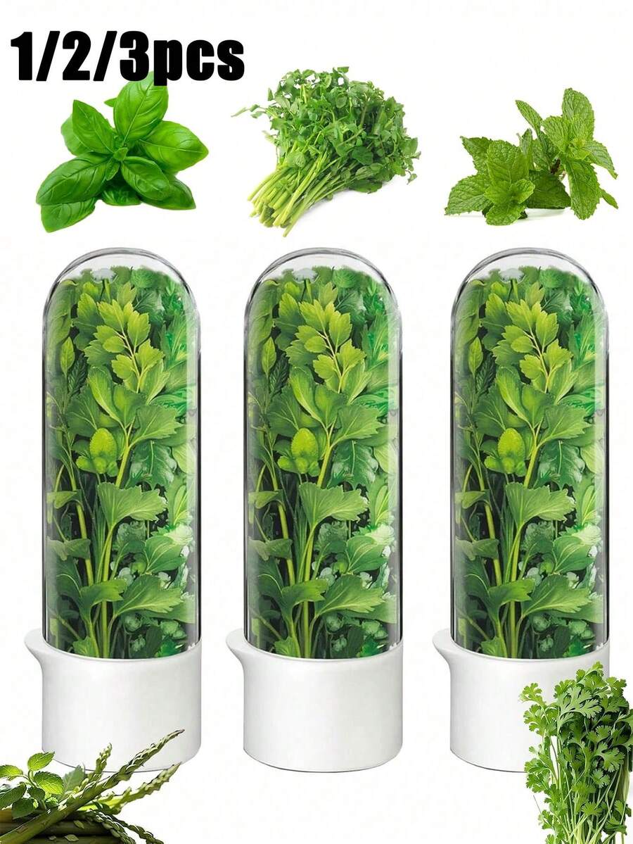 1/2/3pcs Refrigerator Herb Preserver, Refrigerator Herb Storage Container, Cilantro, Mint, Parsley, Asparagus Vegetable Preservation Jar, Keeps Vegetables Fresh For 2-3 Weeks