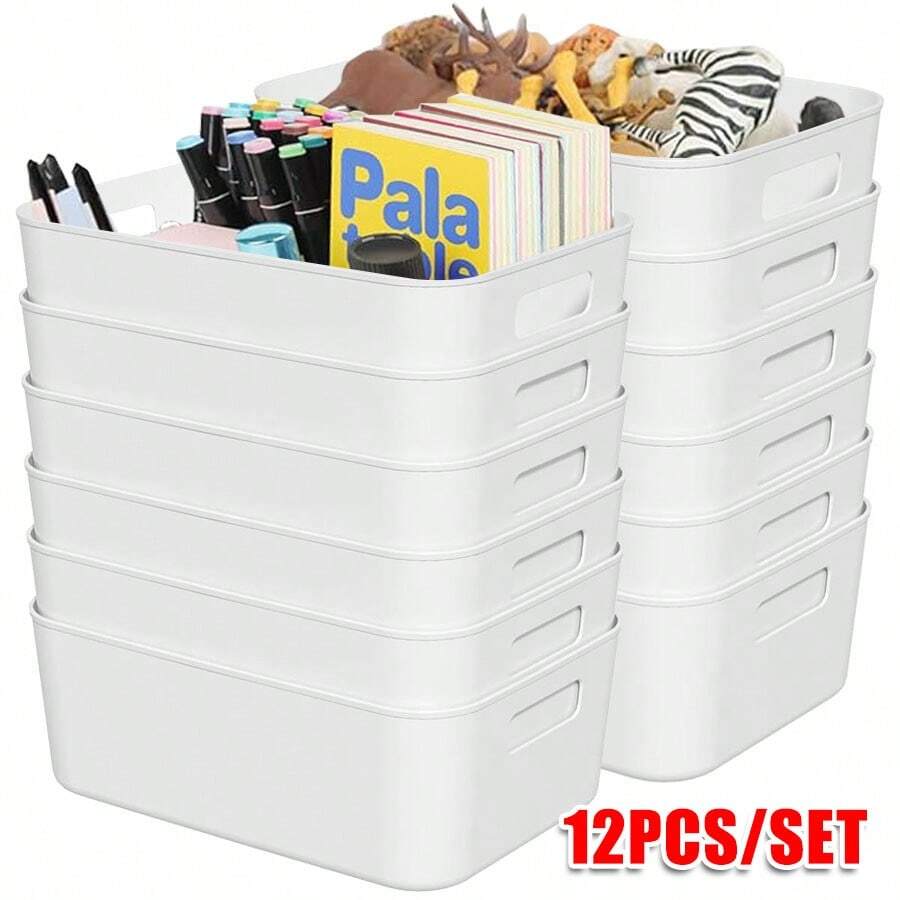 1/2/4/8/12PCS Plastic Storage Bins And Baskets, Stackable Desktop Storage Box Fruit Cosmetic Sundries Small Capacity Kitchen Organizer For Kitchen, Bathroom, Office, Under Sink Organizer