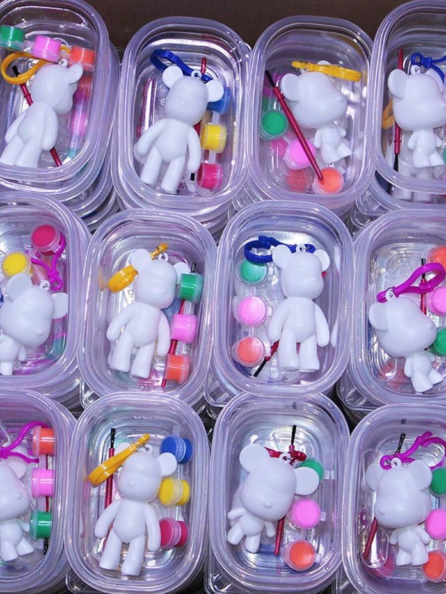 1/2/5/6 Pcs DIY Handcraft Set - Graffiti Doll Keychain, Colorful Bear Shaped Keyring | Material: Plastic | Set Includes: 1 Bear Blank + 3 Color Paints + 1 Stirring Spoon + 1 Keychain | Random Color | Enhance Creativity And Hands-On Ability | Suitable For Party Games, Classroom Rewards, Holiday Gifts