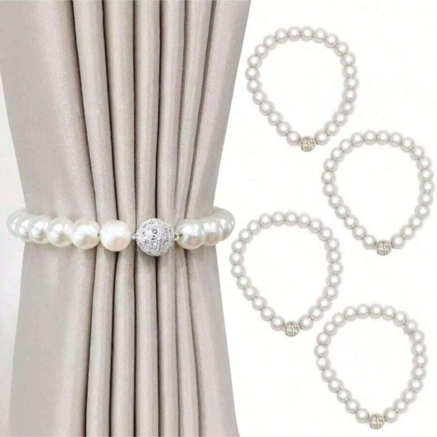1/2pcs Modern Style Faux Pearl Magnetic Decorative Curtain Clips - Polyester Strap Clips, Exquisite Luxurious Clips Suitable For Home And Office Decor, Room Decoration