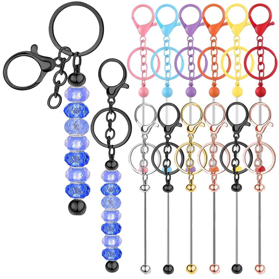 1/3/5/8/10/16/24/36/48 Pcs Blank Beaded Keychain Chains, Metal Beaded Keychain Chains, Beaded Pendant Jewelry Keychain, DIY Craft Supplies For Christmas, Valentine's Day Gifts