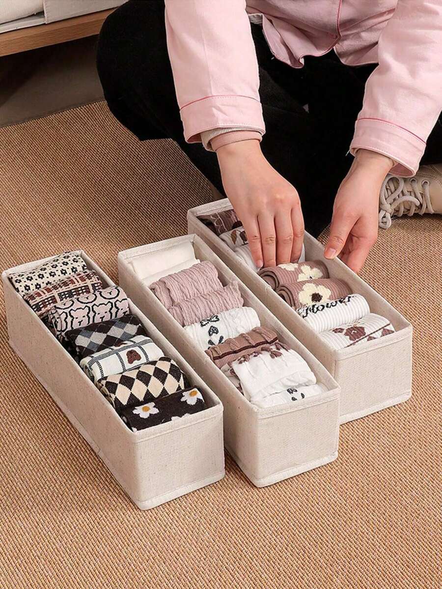 1/3/5pcs Foldable Linen Open Storage Basket, Non-Woven Sock Organizer, Wardrobe Storage And Organization, Stackable Drawer Style Storage Box, Saving Space, Suitable For Socks, Underwear, Ties, Scarves, Accessories, Cosmetics Multi-Purpose Storage Accessories, Home Decoration, Room Decoration.