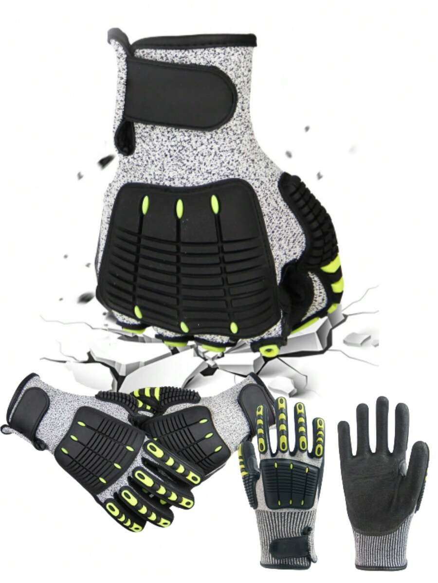 1 Pair Heavy Duty Work Gloves, TPR Impact Resistant Gloves, HPPE High Strength Fiber, Cut Resistant Practical Mechanic Gloves, Shock Absorbing Mechanic Gloves, TPR Cut Resistant Gloves, Durable Safety Gloves Suitable For Drilling Platform, Tool Handling, Machinery, Automotive, Construction And Agriculture, Touchscreen Motorcycle Gloves With Hard Shell And Wrist Pad