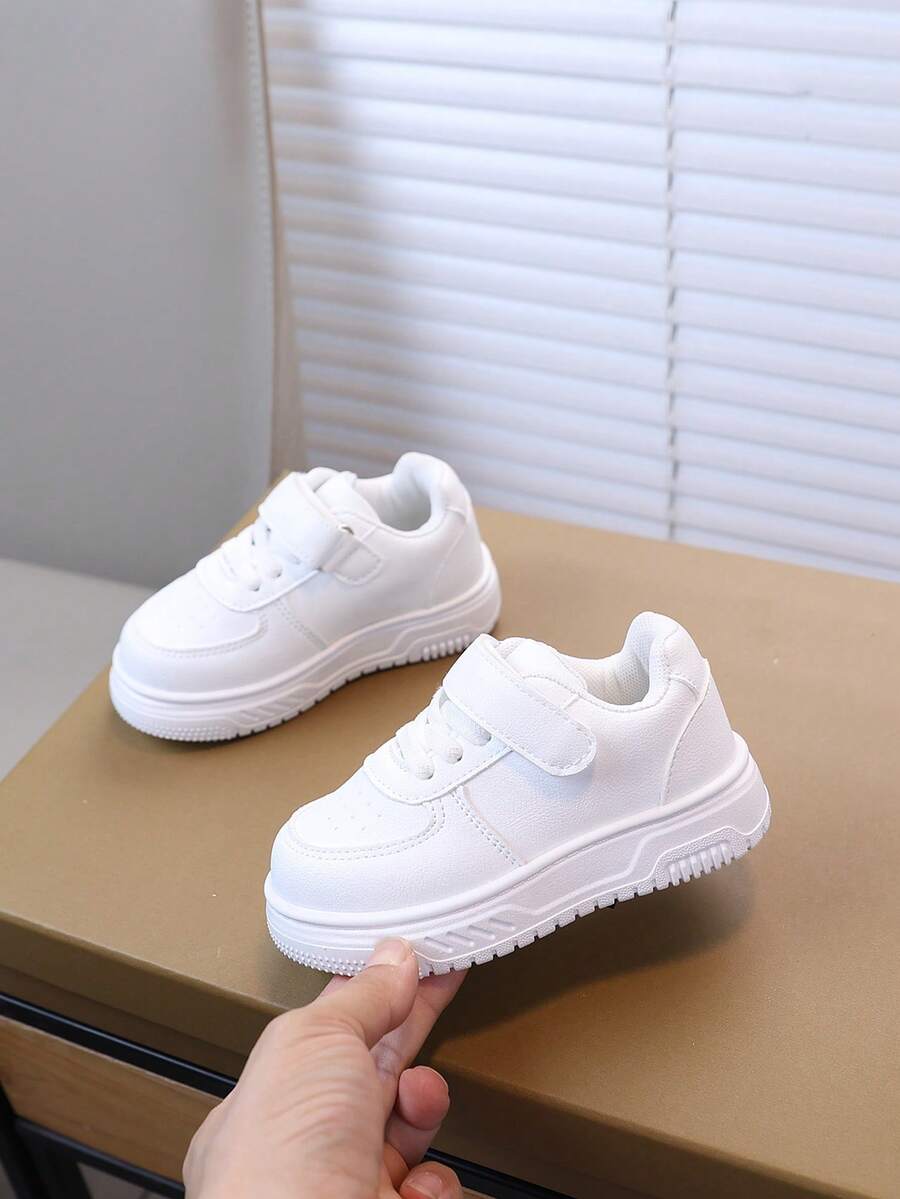 1 Pair Kids Casual Sneakers, Autumn New Girls Soft Sole White Shoes, Toddler Fashion Non-Slip Hook And Loop Flat Shoes, Girls Daily Outdoor Tennis Shoes