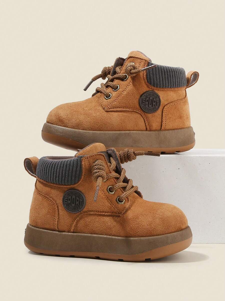 1 Pair Kids Unisex PU Criss-Cross Lace-Up Round Toe Thick Sole Flat Heel Cute Ankle Boots, Versatile Retro Casual Shoes Suitable For All Seasons