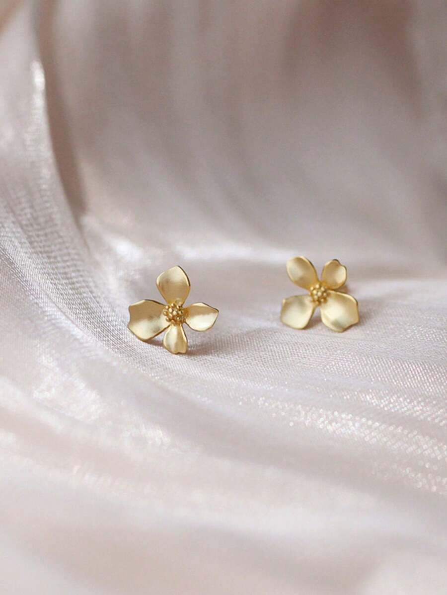 1 Pair Metallic Flower Stud Earrings, Minimalist Design Suitable For Women's Daily Wear, Date, Vacation And Wedding Valentines,Mom,Mother,Mother's Day,Gift