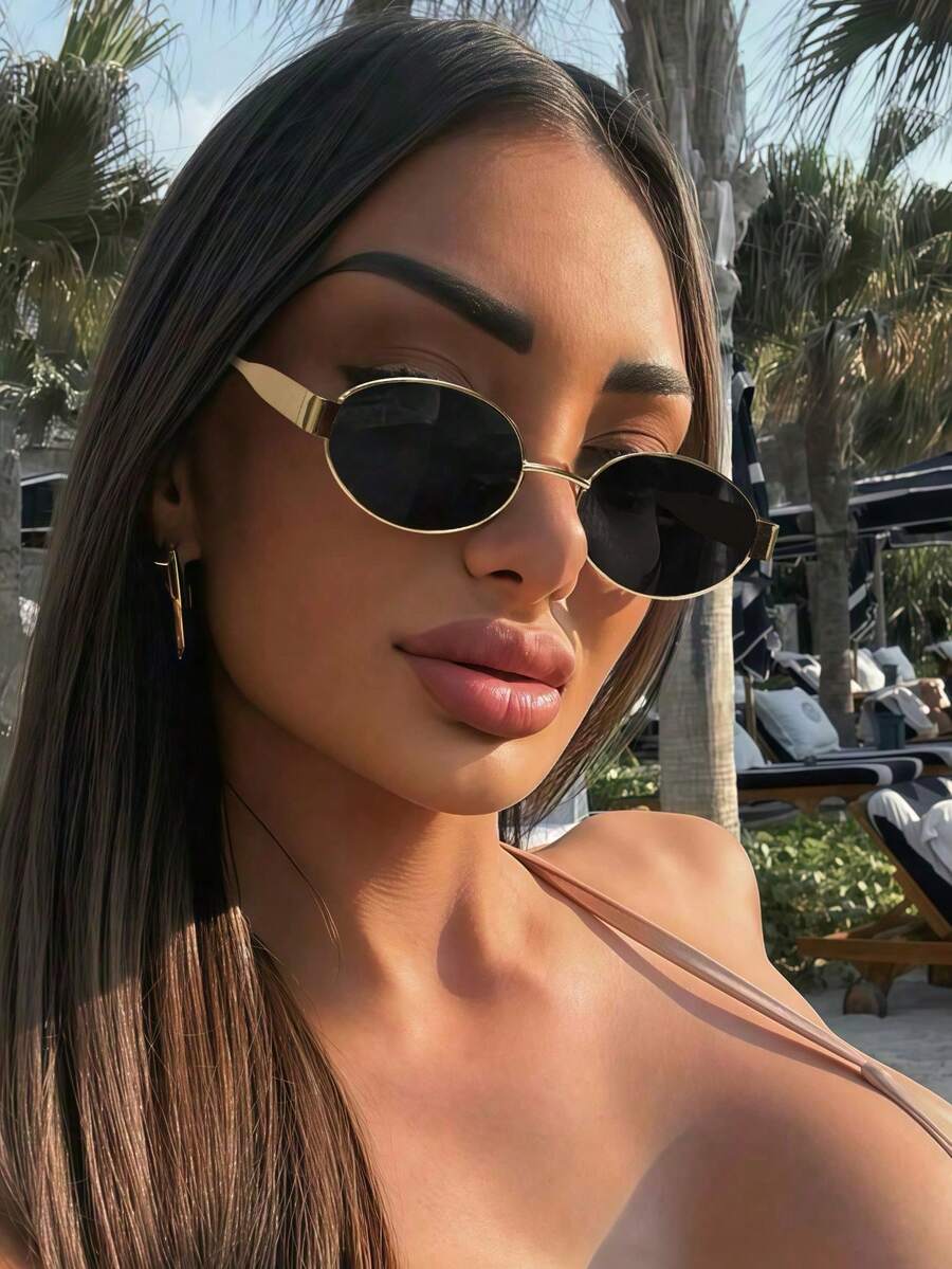 1 Pair Oval Petite Fashionable Women's Glasses, Retro Chic Fashion Glasses With Metal Frame In Black, Travel & Beach Accessory, Women's Autumn/Winter Essential, Business & Casual Gift