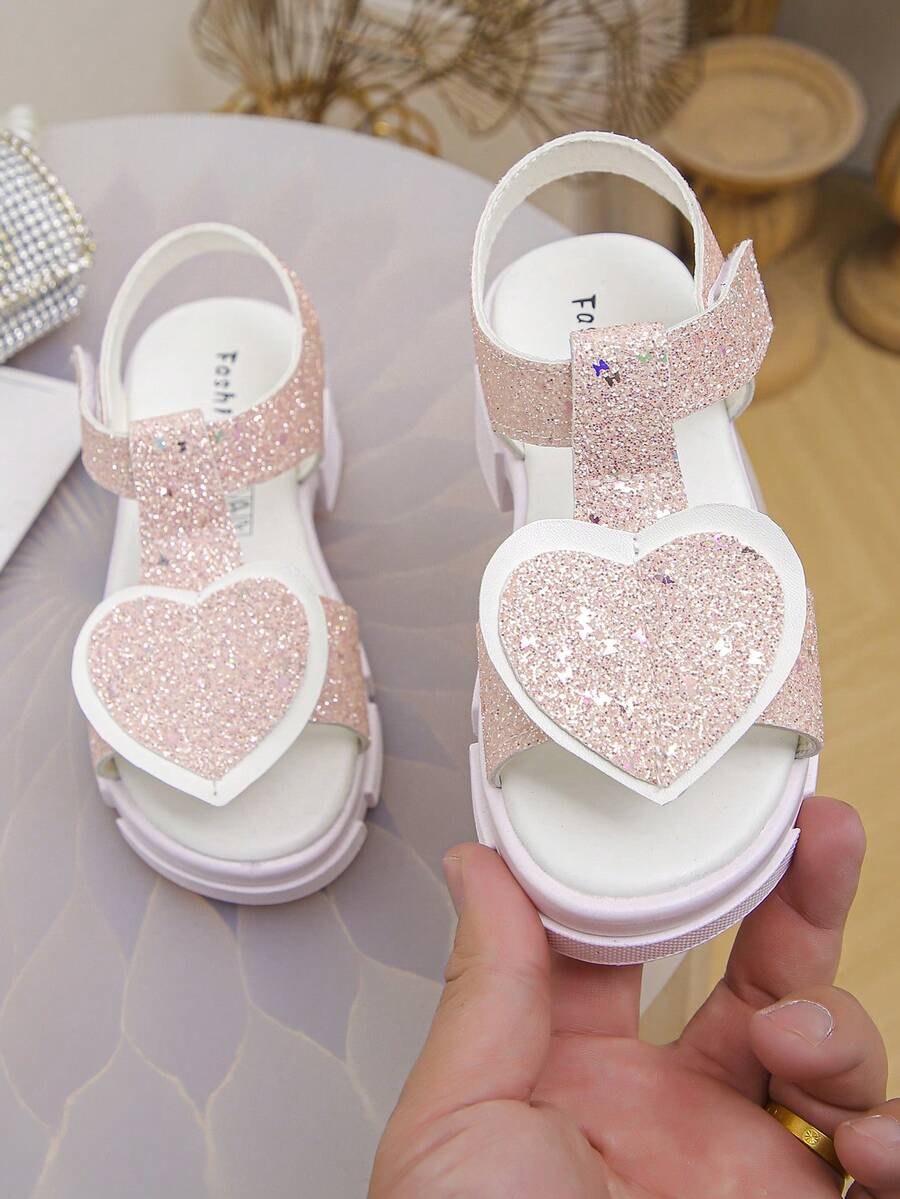 1 Pair Shiny Heart Princess Fashionable Thick Sole Sandals, Versatile And Suitable For Summer