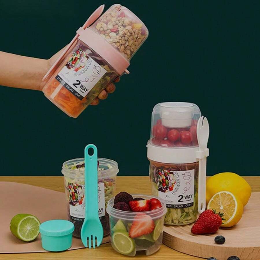 1 Piece Portable Salad Cup, Double Layer Oatmeal Cup, Breakfast Cup (With Lid And Spoon) For Office, Home Outdoor, Picnic, Camping, Work, School