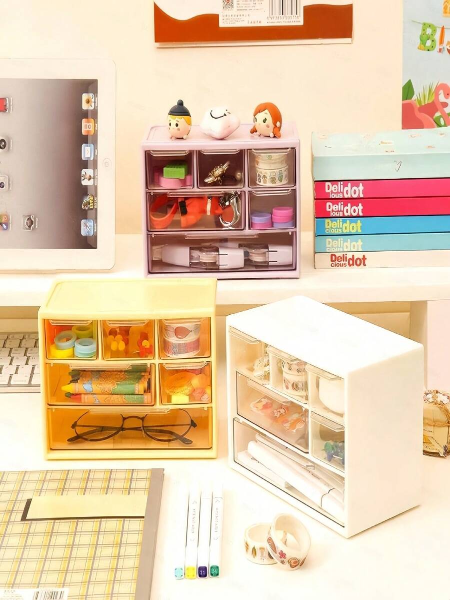 1 Piece White Plastic Desktop Storage Box With Drawers - Multi-Purpose Organizer For Storing Cosmetics, Jewelry, And Medications, Suitable For Home, Bathroom, Office, And School Supplies