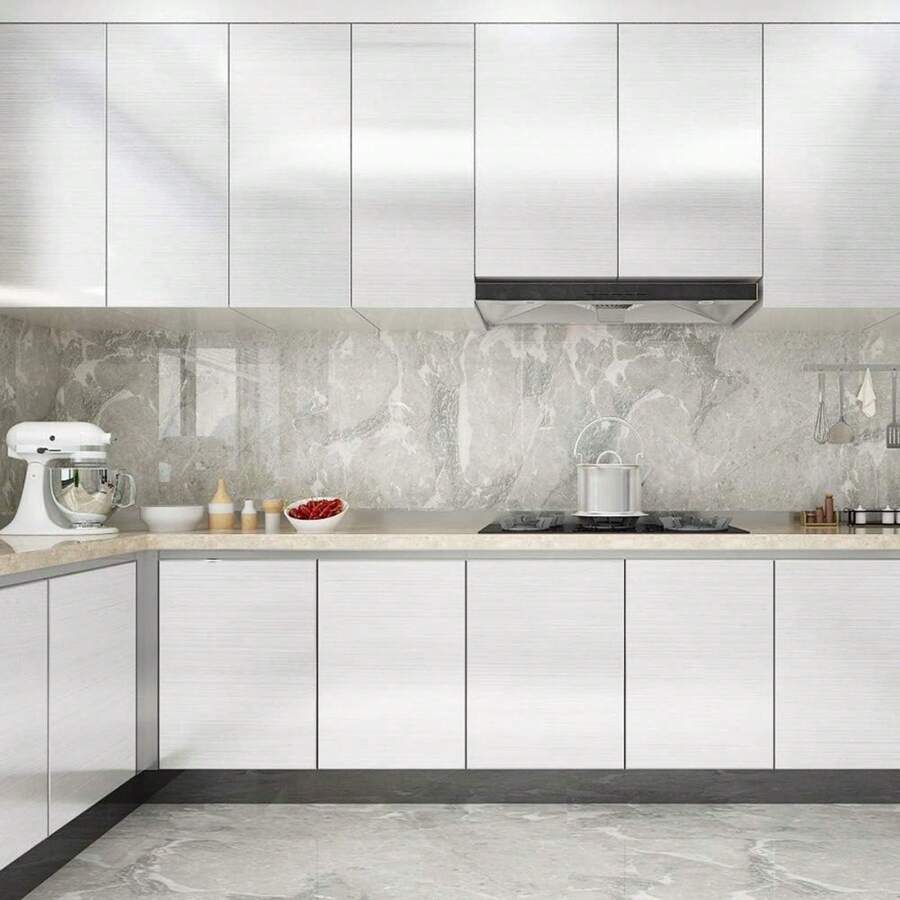 • 1 Roll Of Silver Stainless Steel Brushed Self-Adhesive Wallpaper, Kitchen Oil Proof, Waterproof, High Temperature Resistant Wallpaper, Industrial Style Metal Texture Cabinet Renovation Sticker Vinyl Wall Contact Paper Is Easy To Install And Removable, 15.7inx39.3/118.1/196.8in - Silver - View 11