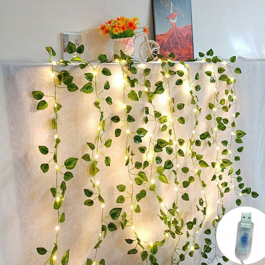 100/50/20 LED Green Ivy Watermelon Leaf Fairy Lights, USB Powered Watermelon Leaf Vine Decor Lights For Bedroom, Dorm, Wall, Garden, Party, Christmas, Wedding, Patio