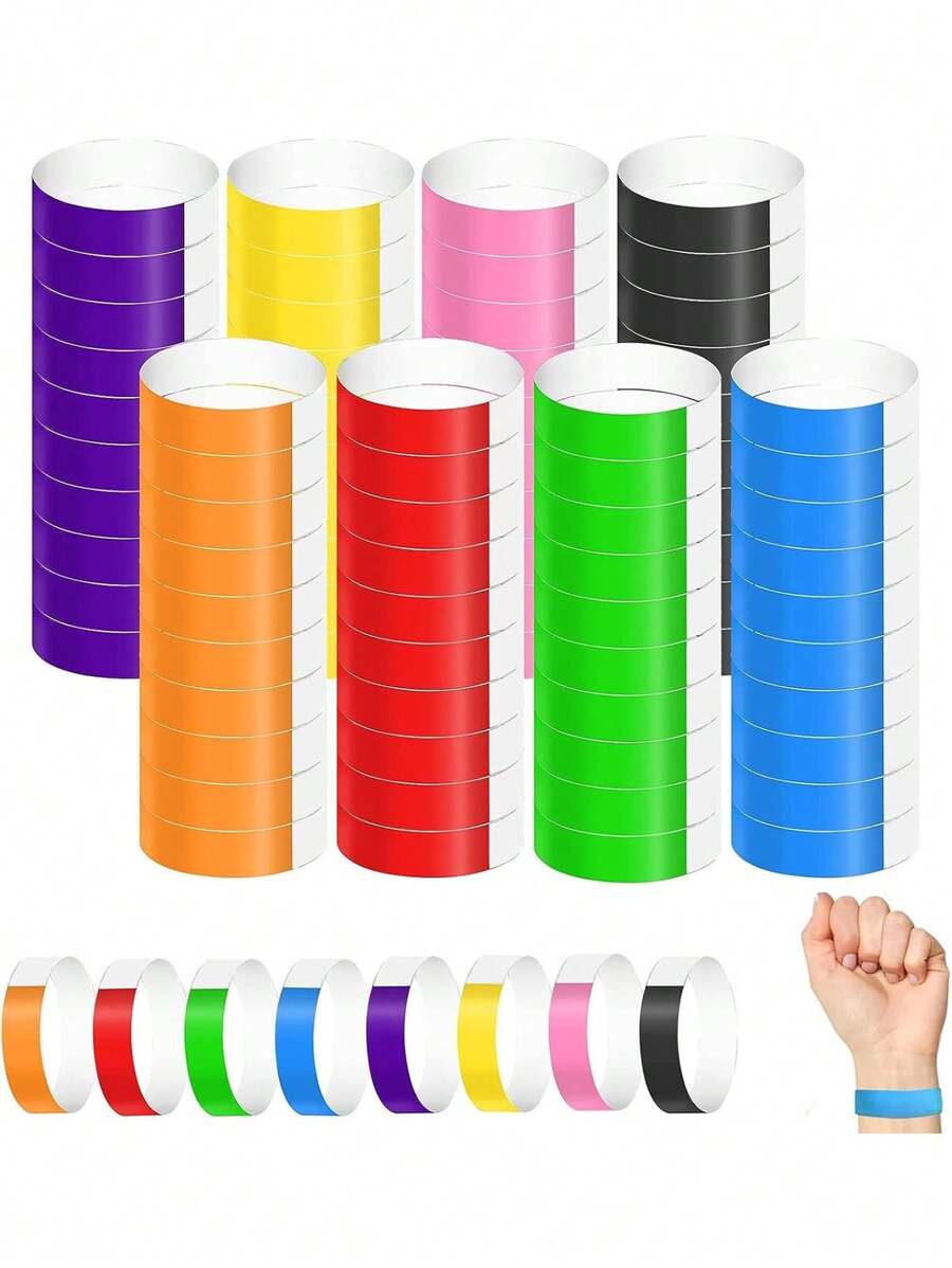 100 Pack VIP Paper Wristbands Neon Wristbands Waterproof Event Entry Wristbands Light Up Concert Wristbands Colorful Adhesive Paper Wristbands For Parties Waterproof, Comfortable, Tear-Resistant Multiple Colors