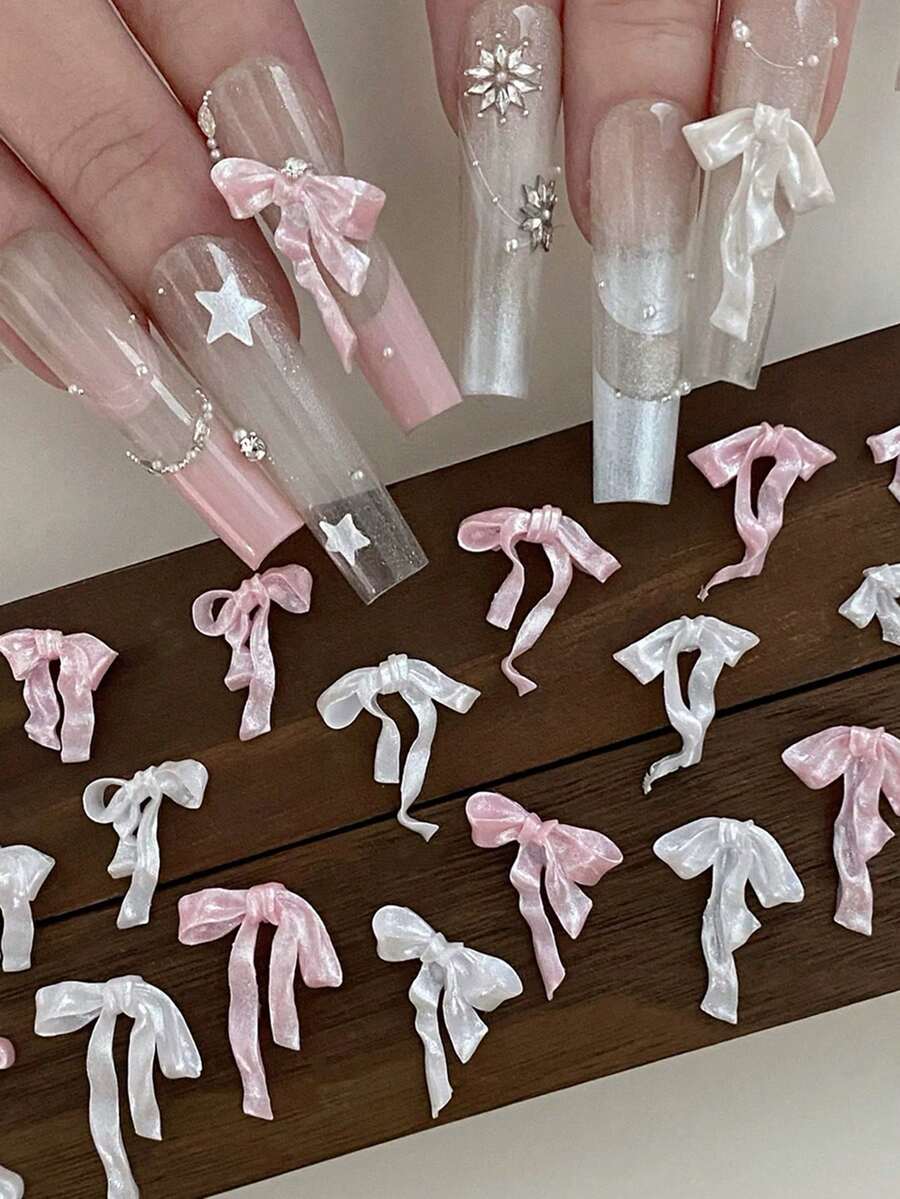 100pcs Butterfly Nail Art Decorations, Blue, White, Pink 3D Butterfly Nail Art Accessories, Cute DIY Nail Art Decor Techniques, Nail Art Crafts