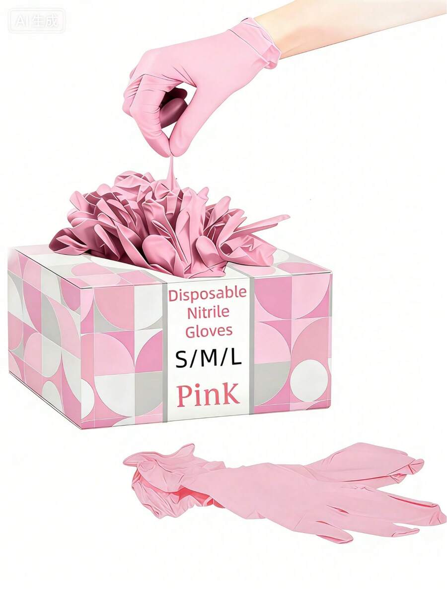 100pcs Disposable Light Pink Nitrile Gloves, Suitable For Household Kitchen Cleaning, Tattooing, Hair Dyeing, Pet Care, Salons, Waterproof And Durable, Cleaning Supplies, Household Gloves, Household Tools (No Packaging Box)