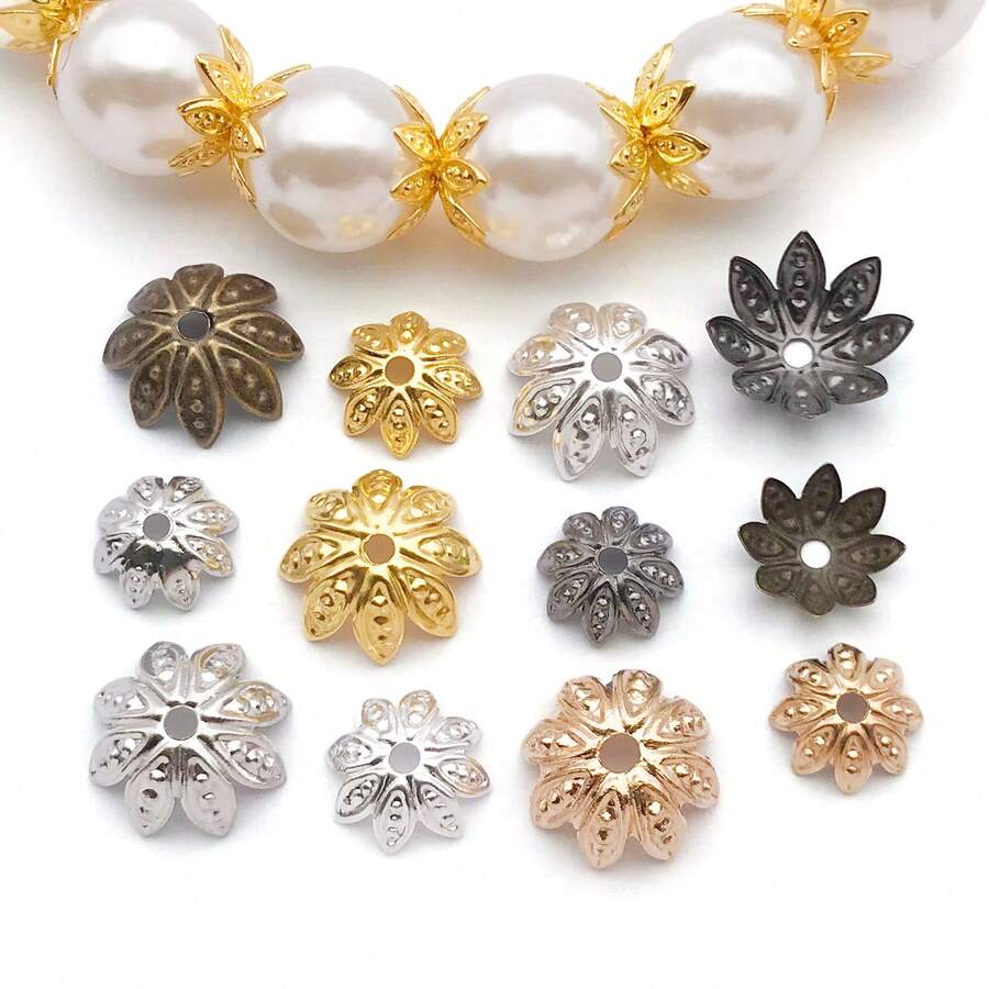 100pcs/Pack 8-10mm Plated Lotus Cup Spacer Caps, DIY Jewelry Findings For Bracelets, Necklaces And Beading.