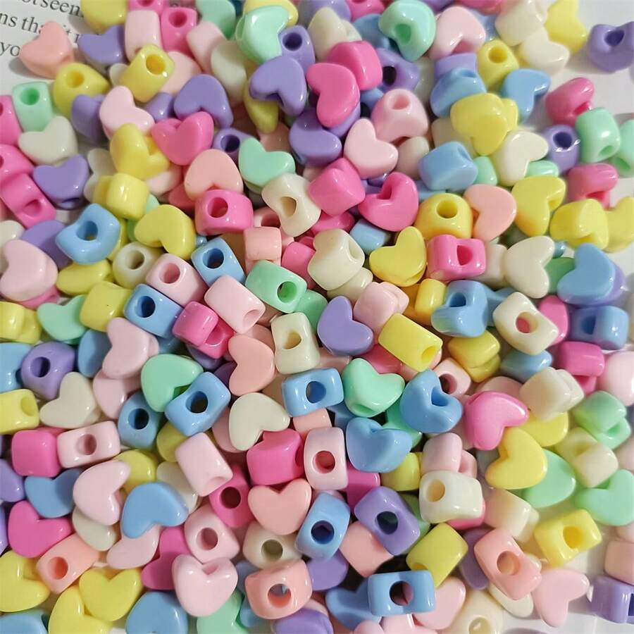 100pcs Solid Heart Shaped Large Hole Beads For DIY Children Bracelet, Necklace, Phone Charm, Acrylic Bead