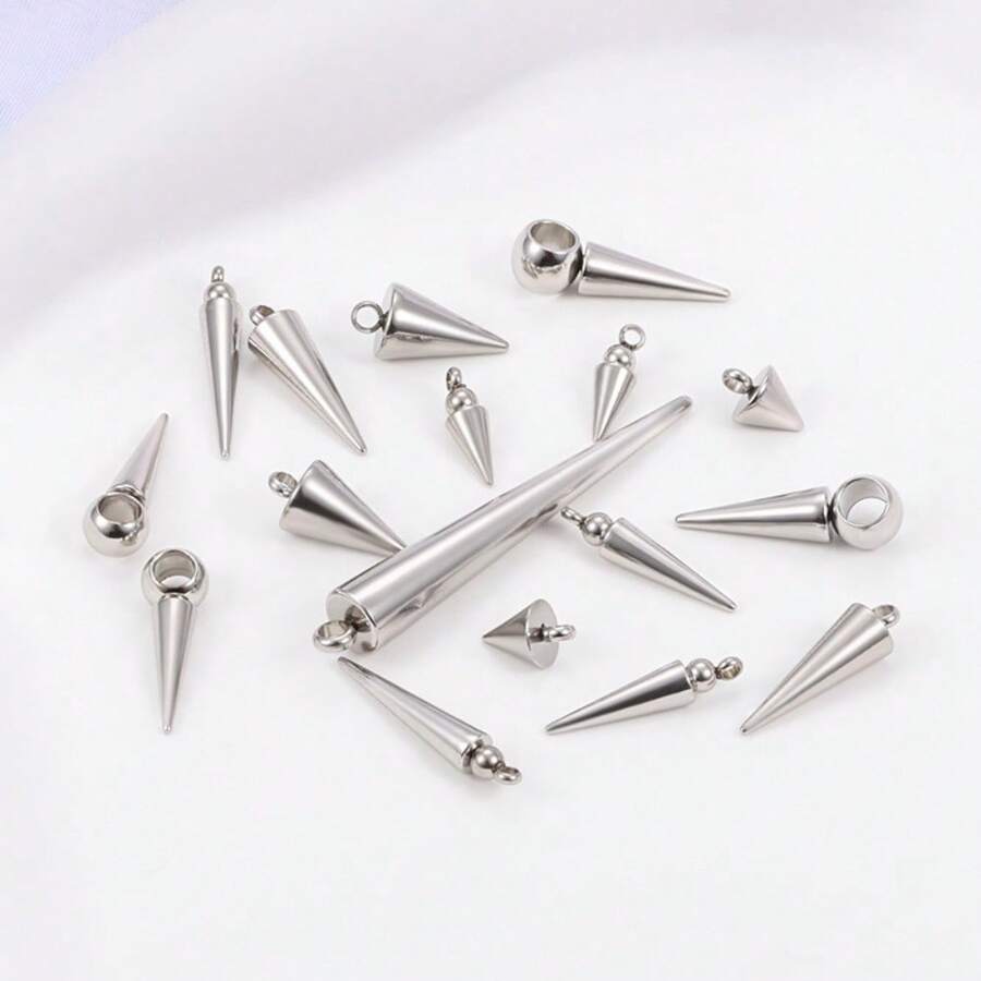 10pcs/Pack High Quality Stainless Steel Cone-Shaped Spike Pendant, Large Hole Cone Pendant, Long Bullet Nail Pendant, Conical Stainless Steel Pendant, Suitable For Hip-Hop, Rock, Gothic, Punk Style DIY Necklace, Bracelet, Jewelry Making, Accessory