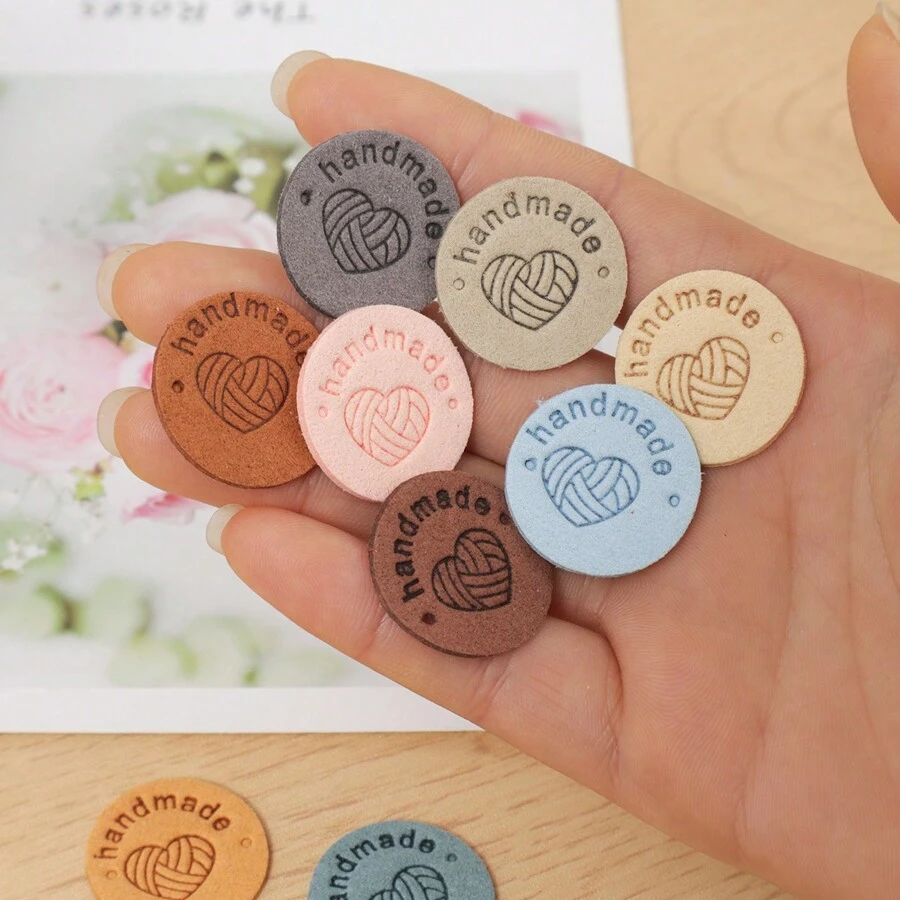 10pcs Random Color Heart Pattern DIY Sewing Label, Round Tag For DIY Hand Craft