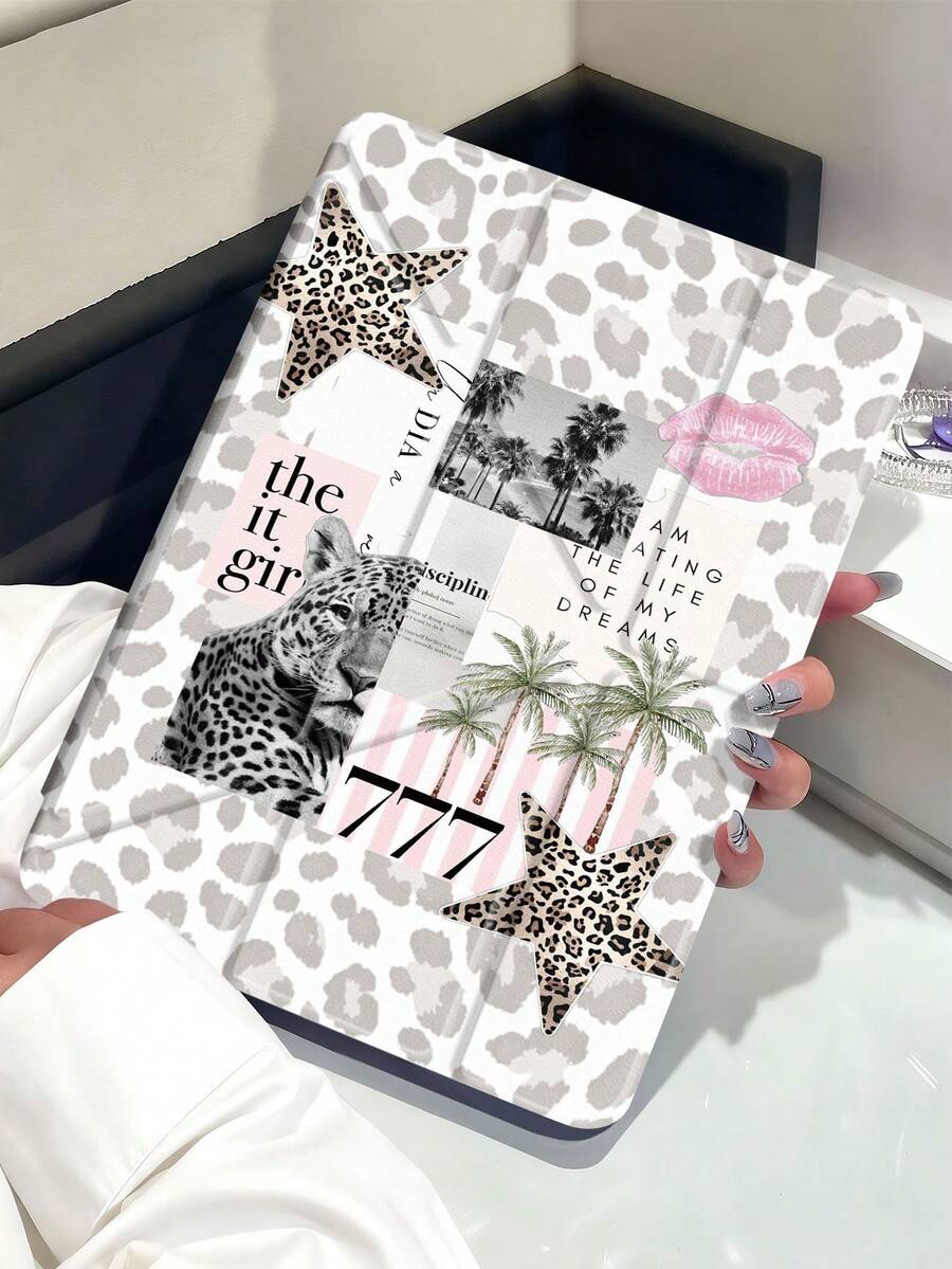 • 11-Inch Leopard Print, Star, And Palm Tree Pattern Tablet Case Compatible With IPad Air M3 2025/M2 2024, Compatible With IPad Air 5th Gen 2022, Compatible With IPad (A16) 11-Inch 11th Gen 2025, Galaxy Tab, Kindle Paperwhite 12th Gen 2024. Clear Back Panel, Fashionable Pattern Protection Case With Auto Sleep/Wake Function And Air Cushion Protection, Suitable For Gifts And Office Use. - Silver - View 11