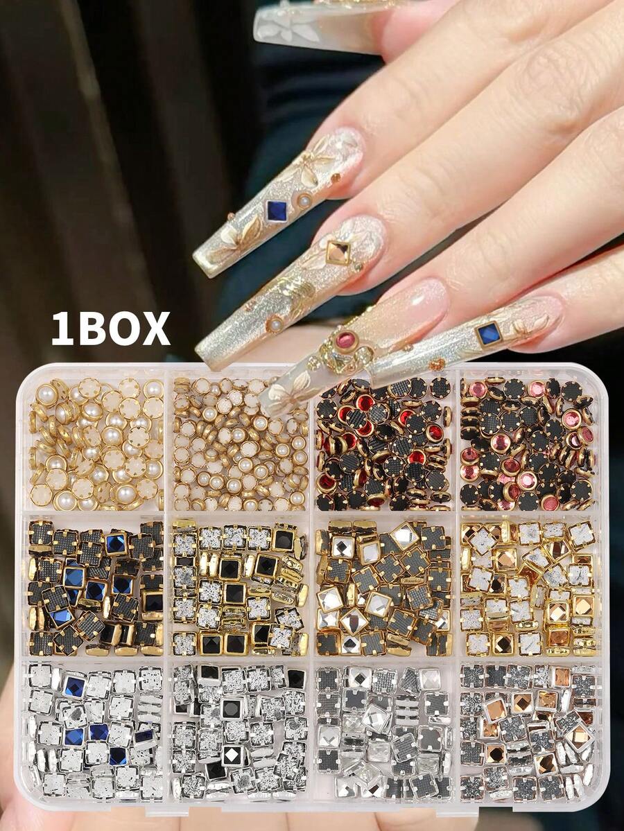 12-Compartment Box Rhinestone Nail Art Decoration Set - Multicolor DIY Nail Jewelry & Accessories
