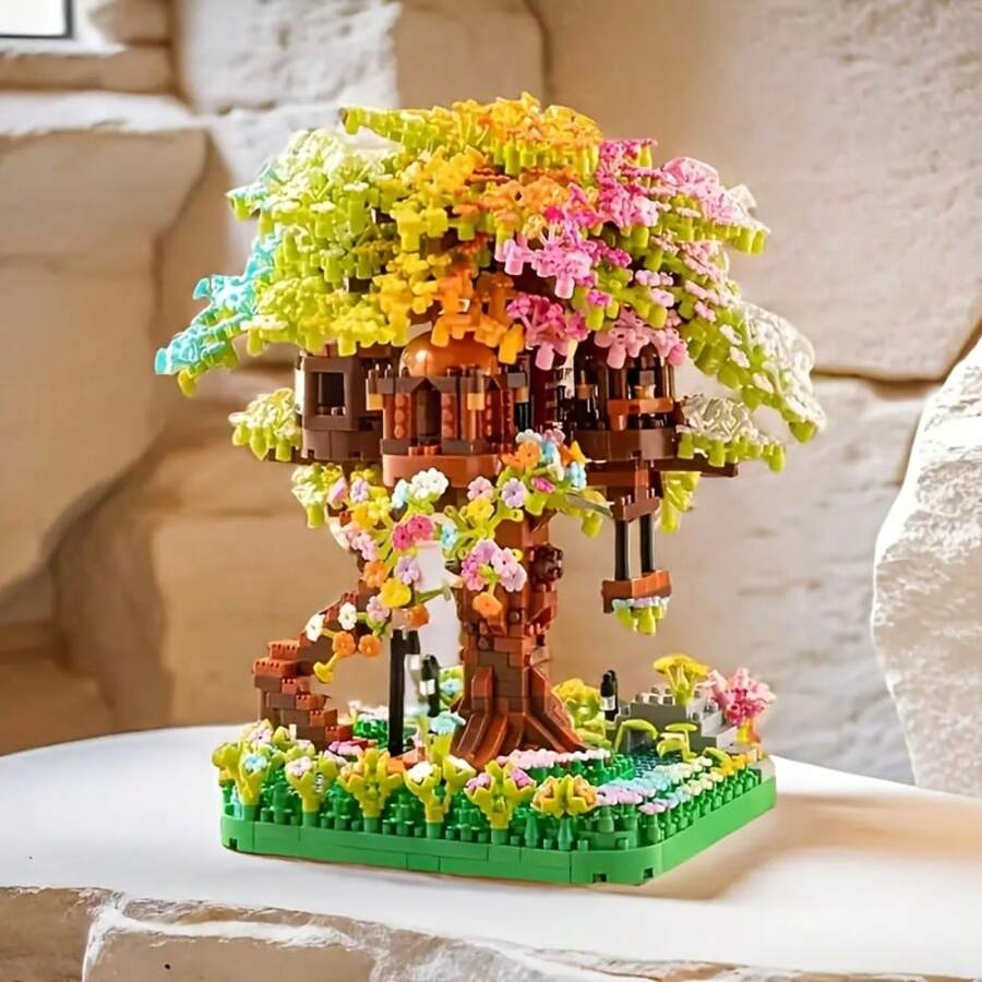 1345pcs Sakura Bonsai Building Blocks Set, Miniature Fairy Tale & Romance Theme Collection, ABS Plastic Architecture Model, Floral & Figurine Themed Toy, No Lighting