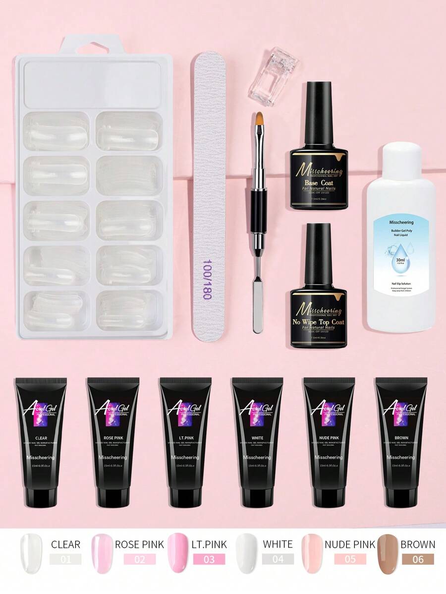 13Pcs Nail Extension Kit Includes Grinding, Polishing, Glue, Crystal Clip, Files, Double Ended Pens, Nail Molds And Other Tools Suit For Daily Use Of Nail Art.