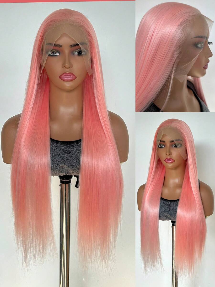 • 13x4 Light Pink Synthetic Lace Front Wigs Long Straight Pink Wigs 180Density Pre Plucked Straight Lace Front Wigs Ready To Wear Wigs Pink Lace Frontal Straight Wigs Heat Resistant Fiber Hair Synthetic Lace - Baby Pink - View 10