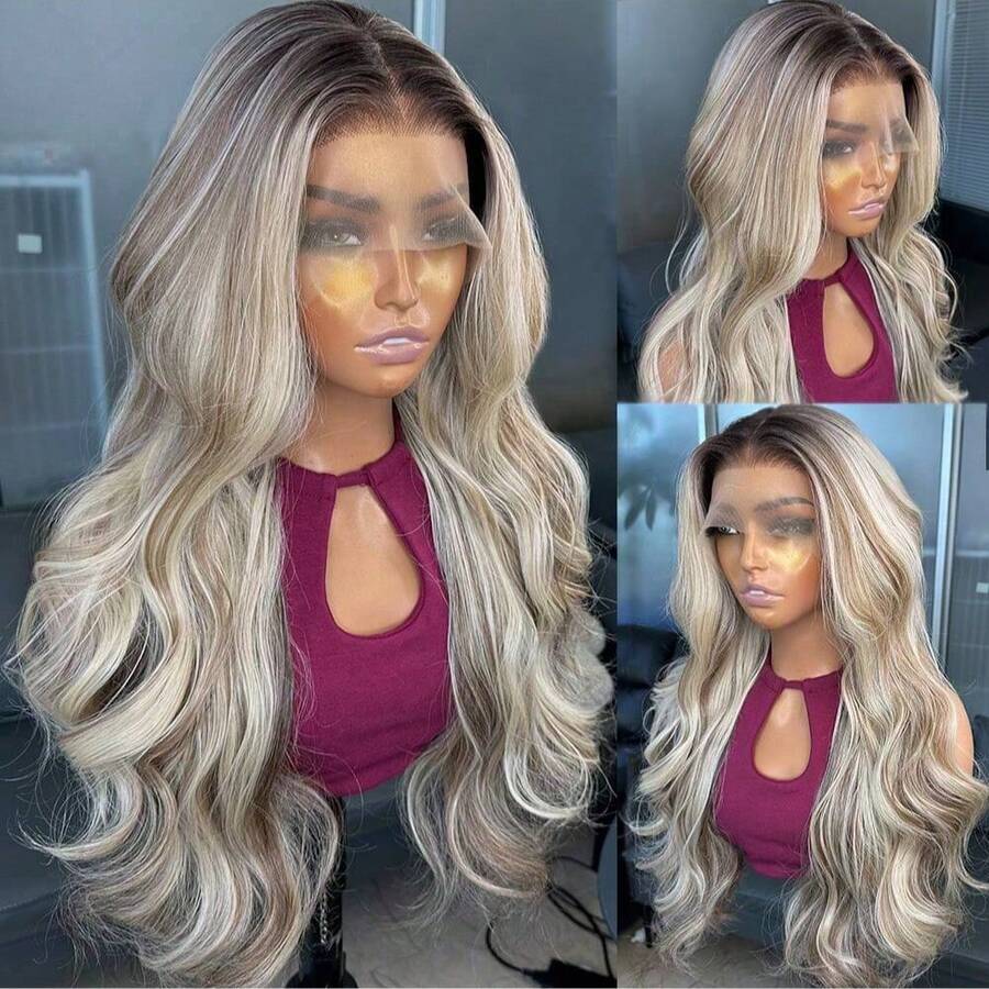 13x4 Synthetic Lace Front Wig, Ombre Gold, 24 Inches Long, Wavy Curly, Glueless Kanekalon Material, Durable Synthetic Wig, Free Part, 150% Density, Suitable For Women's Daily Wear, Natural Soft Appearance, Easy To Wear And Remove, Beginner Friendly