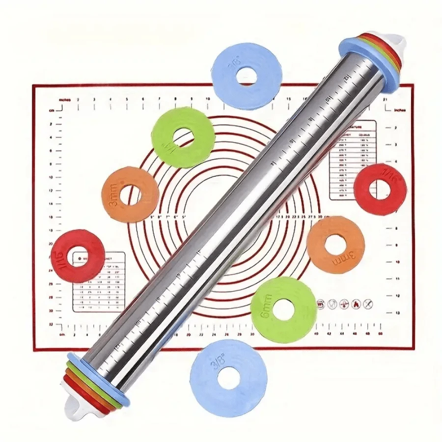 1PC Adjustable Stainless Steel Rolling Pin With Thickness Ring, Multi-Purpose Dough Roller For Baking, Pizza, Pies, Pastries, Pasta, Biscuit Making - Ideal For Christmas, Halloween, Easter, Thanksgiving, Practical Kitchen Baking Tools, Halloween Gifts