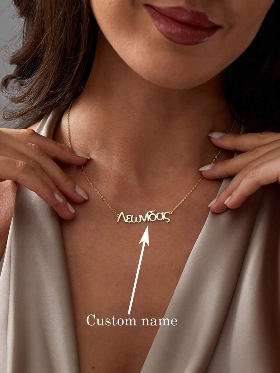 1PC Custom Greek Name Necklace, Fashionable And Simple Greek Name Pendant Necklace, Women's Popular Jewelry, Stainless Steel Jewelry, Name Necklace, Custom Necklace, Women's Necklace, Christmas, Halloween, Valentine's Day, Anniversary Gift For Her, Language Only Greek