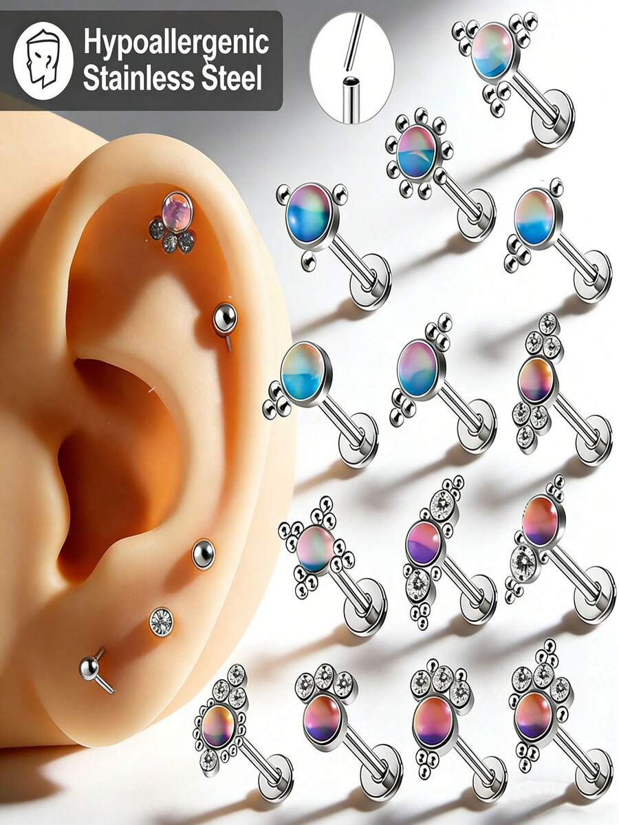 1PC Stainless Steel16G Flash Cz Labret Lip Ring Threadless Flash Cluster Ear Cartilage Tragus Helix Daith Piercing Jewelry