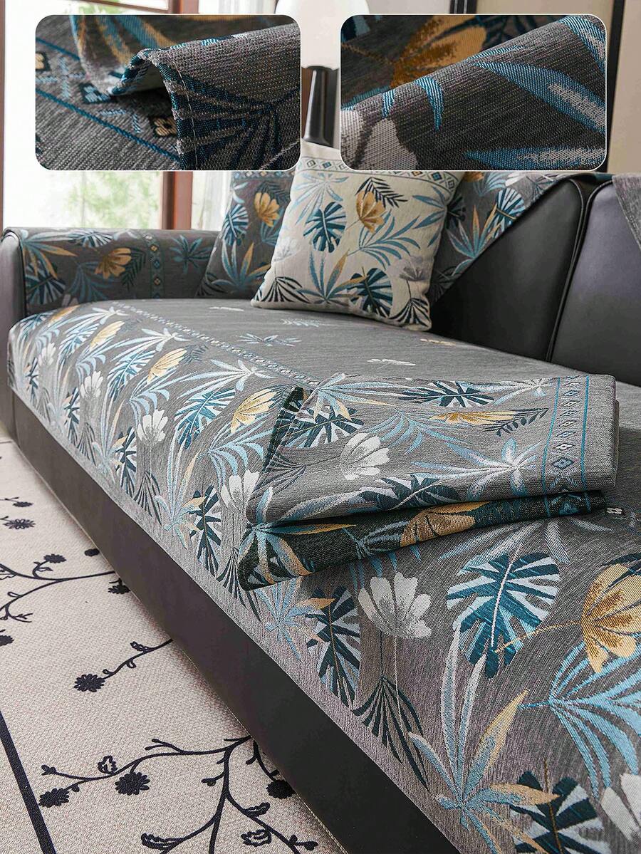 1PC Tropical Print Sofa Cushion Modern High Sense Style Living Room Home Decoration Sofa Cover For Single 2 Persons 3 Persons 4 Persons Sitting Sofa Chenille Fabric Jacquard Knitting Process Pet Anti-Dirty Sofa Cover Cushion