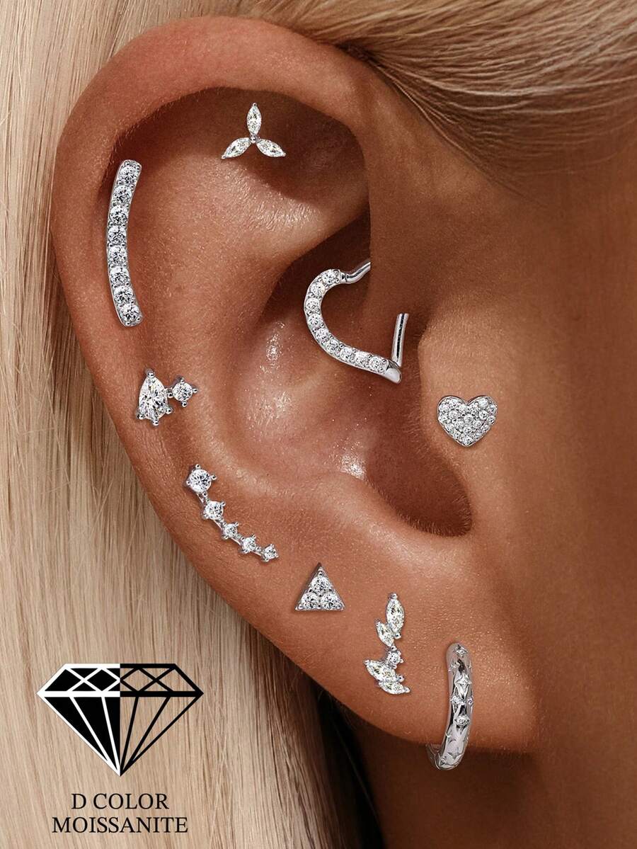 • 1Pc 925 Sterling Silver Moissanite Cute Heart Stud Earring Flat Back Cartilage Helix Piercing Hypoallergenic Pure Silver Suitable For Women'S Daily Wear,Wedding,Parties, And Banquet Occasions - Silver - View 20