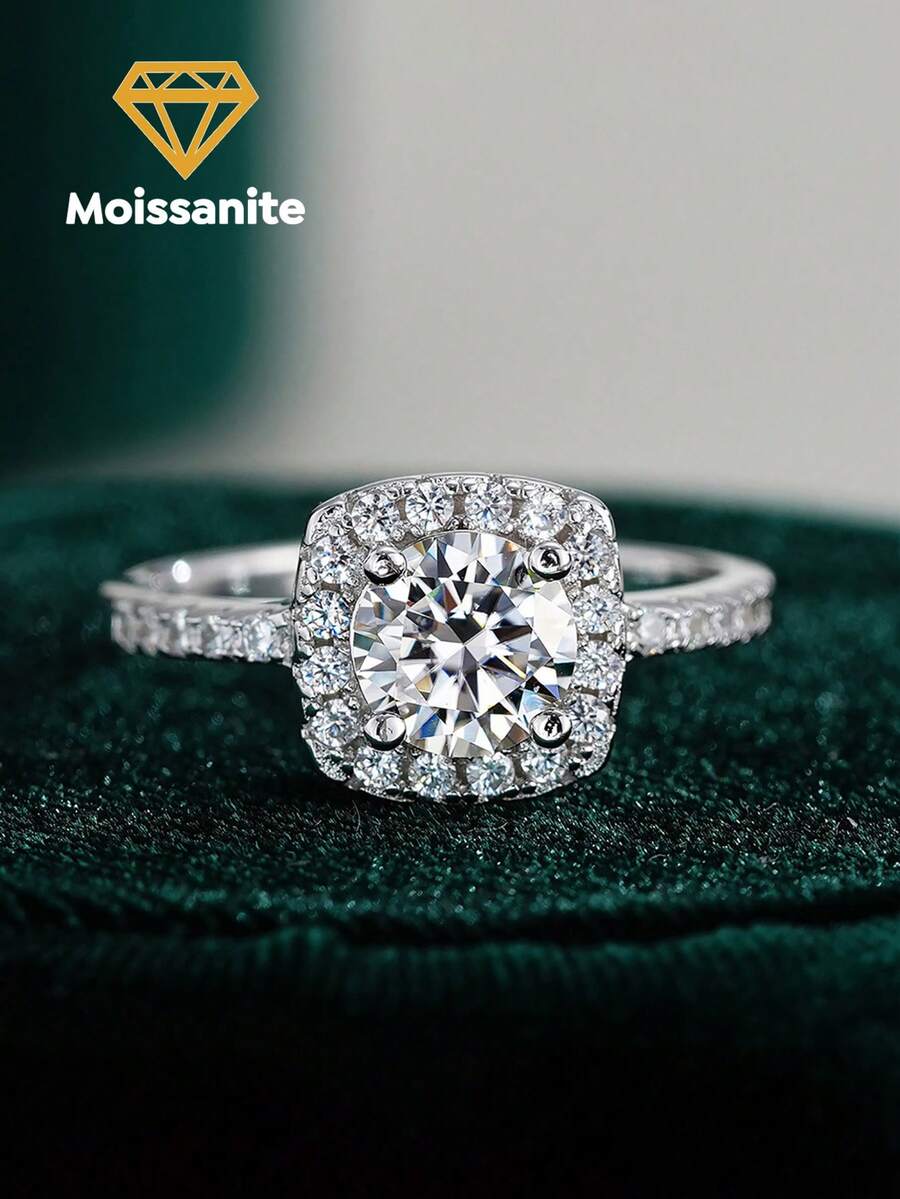 1pc 0.5ct-3ct Square Moissanite 925 Sterling Silver Luxury Engagement Ring, Promise Ring, Anniversary Ring, Jewelry Gift For Women, Valentine's Day Gift