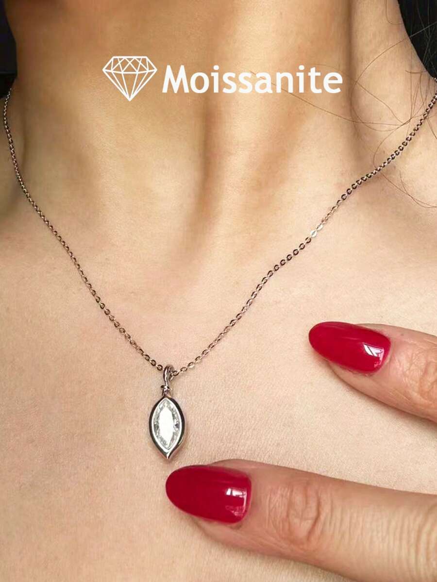 1pc 1.5ct Moissanite Leaf Shaped Necklace, Hypoallergenic S925 Sterling Silver Clavicle Chain, Versatile Necklace, Elegant Gift