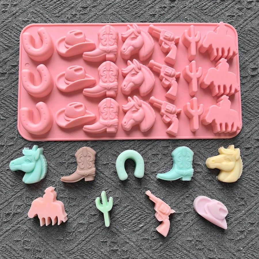1pc 21-Cavity Western Themed Silicone Mold, DIY Cowboy Boots, Hats, Chocolate, Candy, Cake Decorating Baking Mold