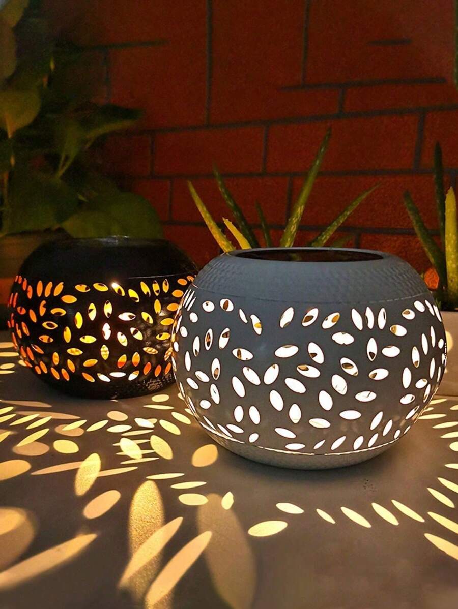 1pc/2pcs Solar Orb Imitation Ceramic Pot Lantern, Dancing Warm Light Flashing Flame Lamp, Outdoor Waterproof Decoration Landscape Light Suitable For Home Decor Patio Lawn Porch Terrace Garden Path Driveway Sidewalk Fence Deck Patio Pool Area Family Dinner Birthday Party Wedding Decor Ambiance Lamp (Black/White)