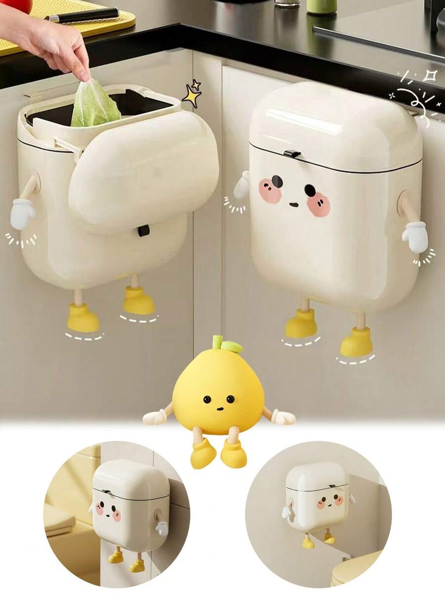 1pc 3.2 Gallons/12 Liters Kitchen Cabinet Door Hanging Trash Can Office Hanging Trash Can Plastic Compost Bin With Lid PP Plastic Material Smooth Surface Easy To Clean Leak-Proof Seal Silent Closing Pull-Out Opening Trash Storage For Kitchen Office Bathroom RV Home