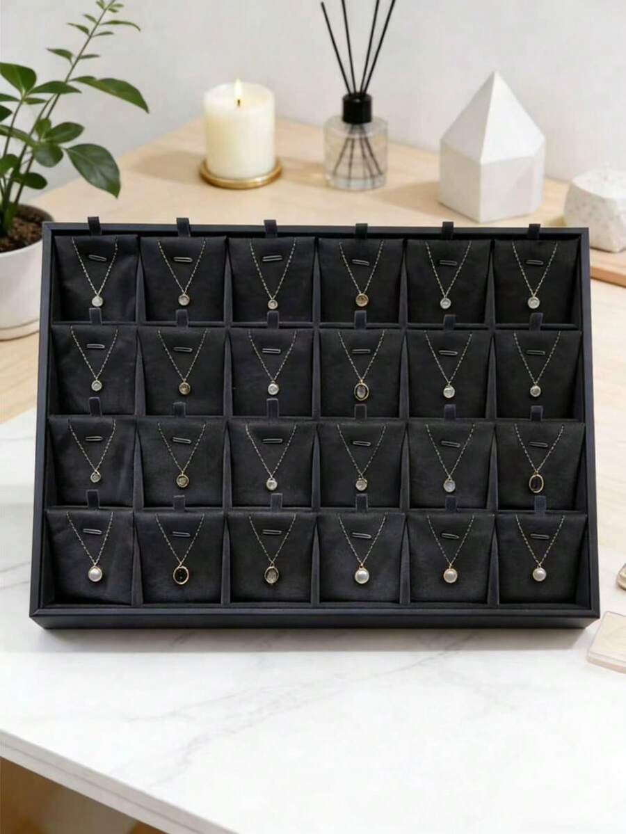 1pc 35x24x3cm Multi-Layer Jewelry Display Tray, Ring Storage Box, Necklace & Bracelet Holder, Photography Prop Display Stand, Black