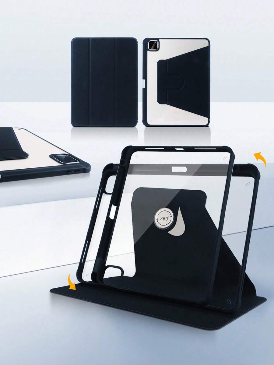 1pc 360° Adjustable Rotating Acrylic Tri-Fold Stand, Acrylic Scratch-Resistant & Bend-Resistant Back Cover With Pen Slot, Auto Sleep/Wake, Minimalist/Classic/Best-Selling Tablet Protective Case Tri-Fold Stand, Suitable For IPad Mini6/Mini7/9.7/10.2/10.5/10.9/11"/Air11(M2)2024/10th Gen/12.9"/IPad Air 13(M3 2025)/IPad Air 11-Inch (M3) 2025/IPad (A16) 11 Inch 11th Generation 2025 Apple Models, Non-Magnetic Stand
