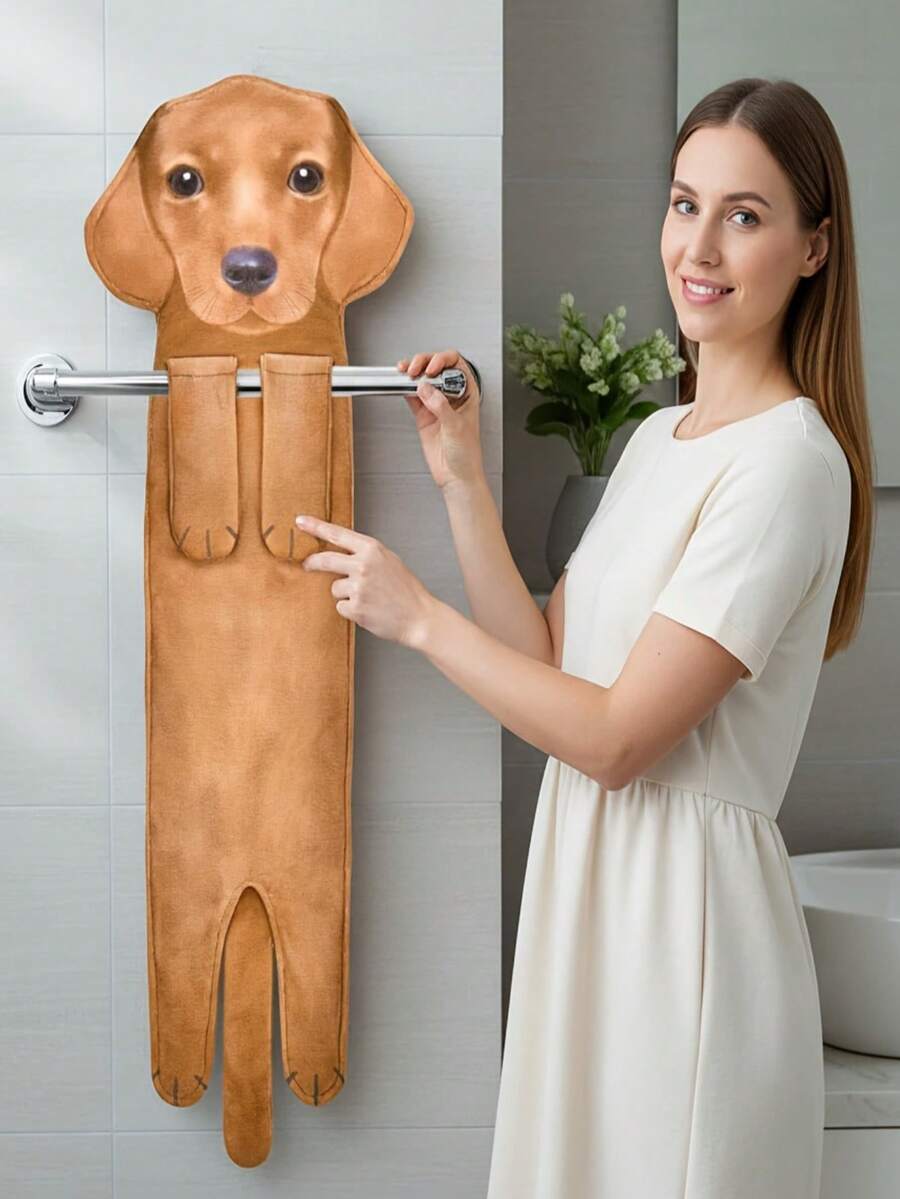 1pc/3pcs Cute Cat & Dog Pattern Hand Towels, Realistic Design, Thickened Hanging Hand Towels Suitable For Kitchen, Bathroom And Washroom