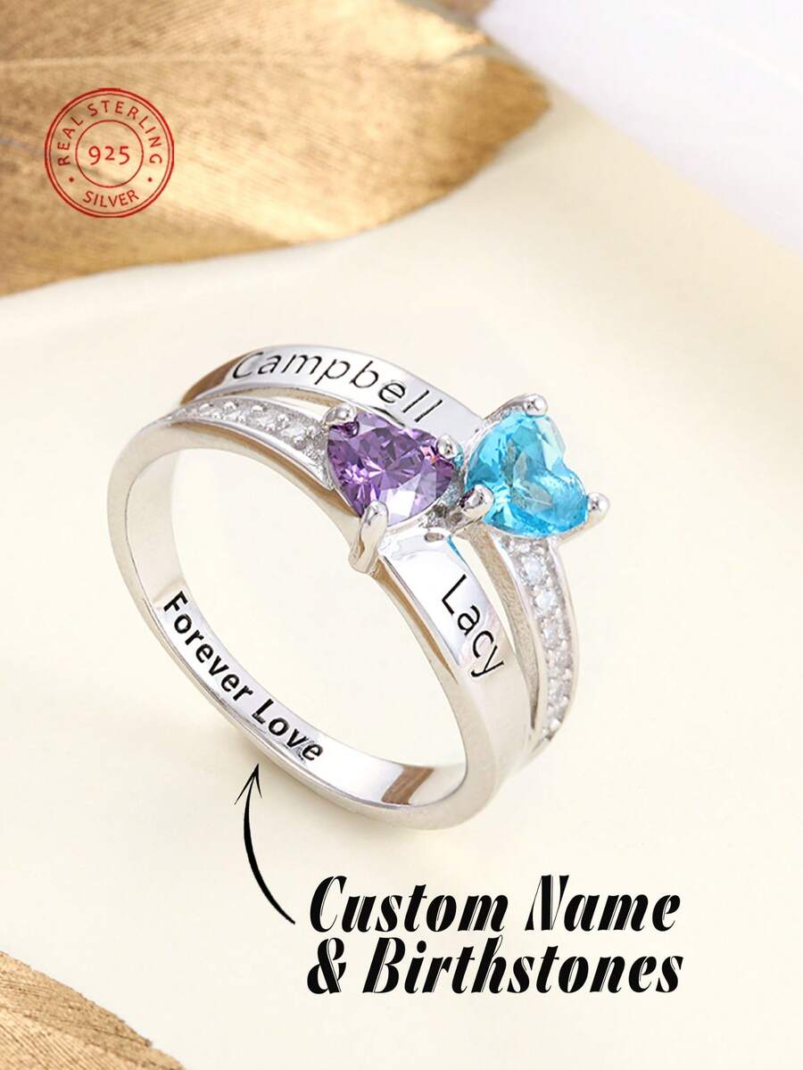 1pc 925 Silver Birthstone Ring, Minimalist & Elegant Birthstone Ring Gift For Mom, Personalized Birthday Gift