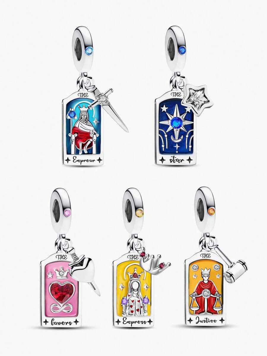 1pc 925 Sterling Silver Tarot Card Pendant, Suitable For DIY Bracelet, Women Jewelry