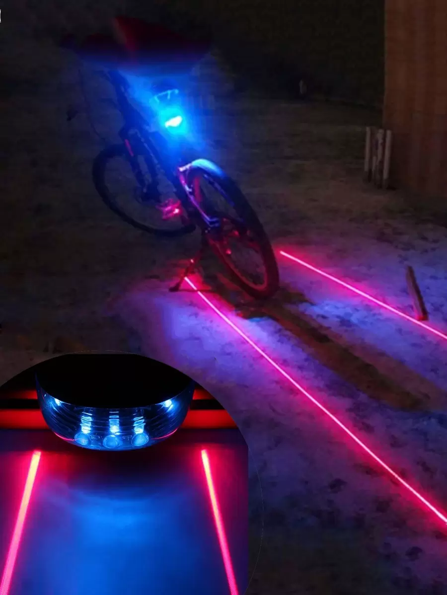 • 1pc Blue Parallel Lines Bike Tail Light With 5 Leds, Quick Flashing, 7 Modes Warning Light, Cycling Gear - Blue - View 11