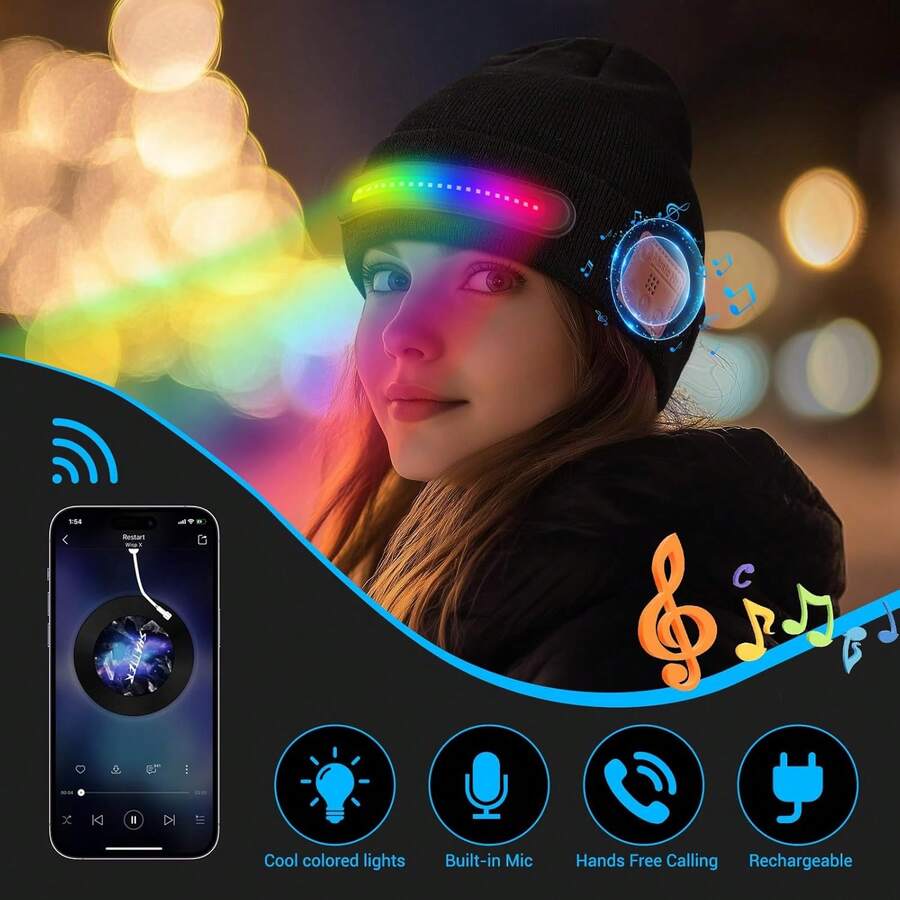 1pc Bluetooth Beanie With Light, Unisex Flashlight Cap, Multiple Adjustable Light Modes, USB Rechargeable LED Headlamp Winter Hat, With Wireless Headphones, Hands-Free Calling, Stocking Stuffers For Men Women, Winter Warm Hat, For Skiing Hunting Camping Hiking Running Fishing Walking The Dog