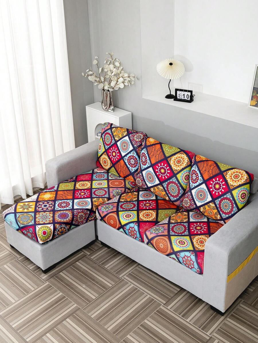 1pc Bohemian Style Printed Stretch Sofa Slipcover, Anti-Slip Multifunctional Furniture Protector For Bedroom, Office, Living Room