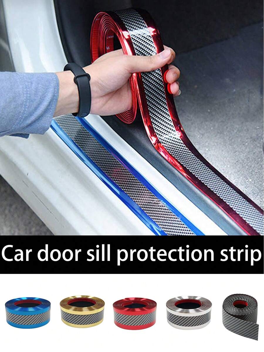 1pc Car Door Sill Protector, Carbon Fiber Style Protective Sticker, Anti-Scratch Car Decoration Accessory